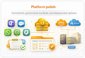 A platform that makes agent rollouts routine: consistent UX across channels, governance built‑in, and adapters for the tools teams already use.