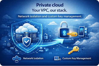 Your VPC, our stack. Network isolation and custom key management.
